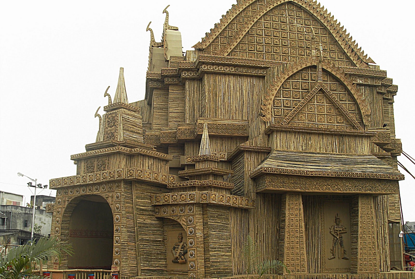 The city of Kolkata (formerly Calcutta) in West Bengal dresses up like a newly-wed woman. All kinds of decorations and lightings can be seen everywhere. People of a particular locality gather and make their own worshipping. Each locality builds up its own temporary temple-like structure inside which the clay model of Goddess Durga, beautifully decorated with all kinds of ornaments, crown etc., is worshipped. In this way several hundreds of such worshipping take place in and around the city of Kolkata every year. Different localities make the clay model in different styles. This worshipping goes on for four days. On each day people go there to make their offerings to the goddess. They also make wishes.